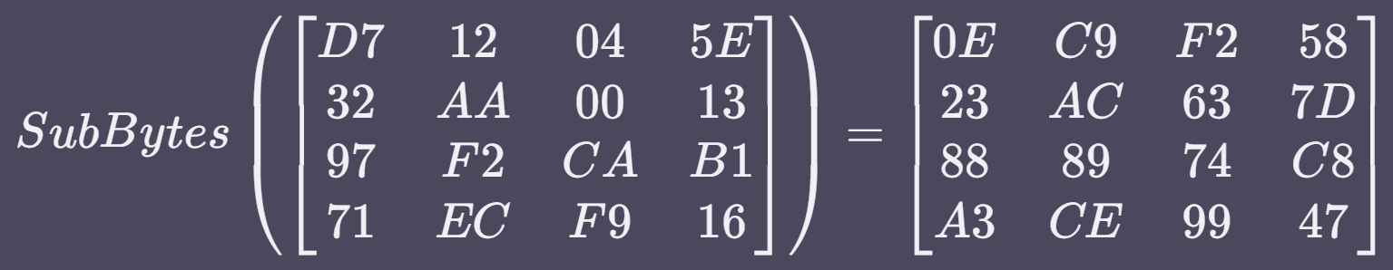 - State의 각 바이트를 S-Box를 참조하여 치환하는 함수