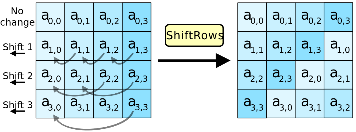 - State의 각 행을 구성하는 바이트들을 쉬프트하는 함수