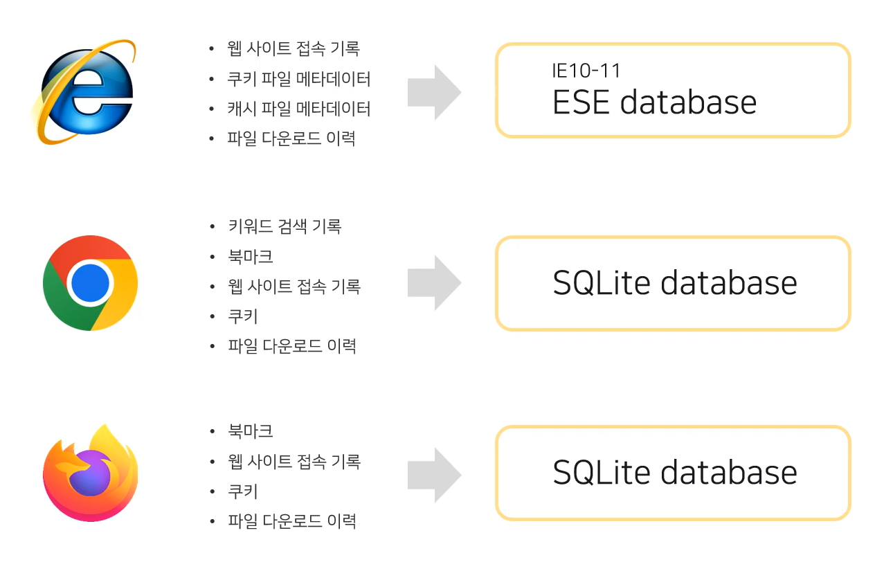 - 인터넷 익스플로러는 WebCacheVo1.dat 파일에 모든 히스토리가 저장되어 있다.