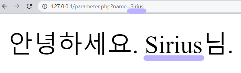 안녕하세요. <?php echo $_GET['name']; ?>님.