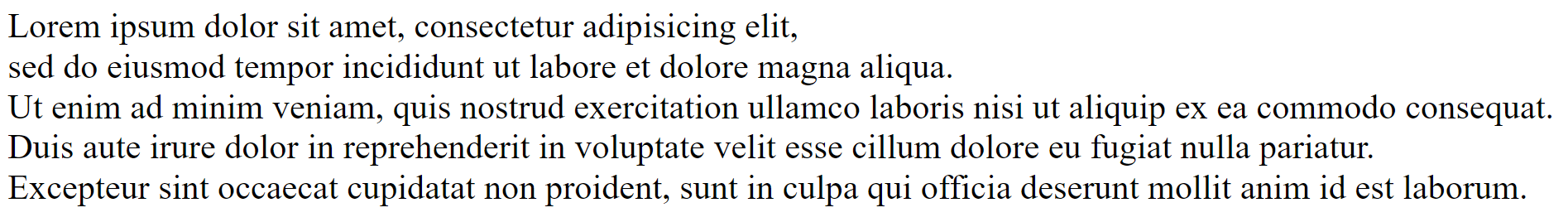 $str = "Lorem ipsum dolor sit amet, consectetur adipisicing elit, sed do eiusmod tempor incididunt ut labore et dolore magna aliqua. Ut enim ad minim veniam, quis nostrud exercitation ullamco laboris nisi ut aliquip ex ea commodo consequat. Duis aute irure dolor in reprehenderit in voluptate velit esse cillum dolore eu fugiat nulla pariatur. Excepteur sint occaecat cupidatat non proident, sunt in culpa qui officia deserunt mollit anim id est laborum.";