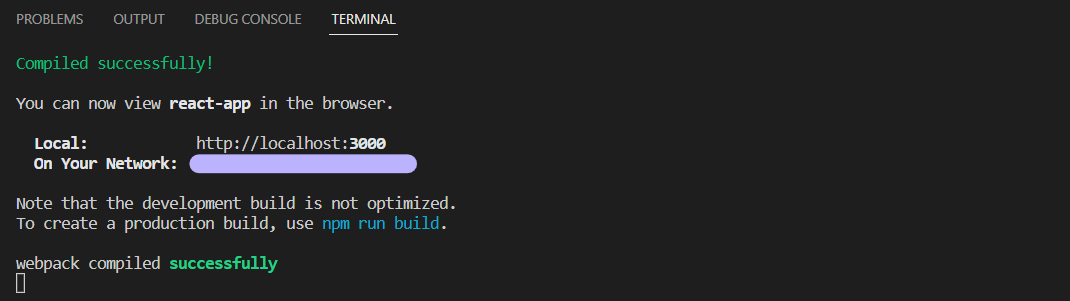 5. Terminal에 출력된 2개의 주소: 개발 중인 앱을 확인하는 주소. 2개 중 하나로 들어가면 된다.