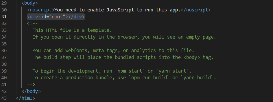 - id가 root인 태그 안쪽에 들어가는 컴포넌트들은 src 디렉토리 안의 파일을 수정해서 만들 수 있다.