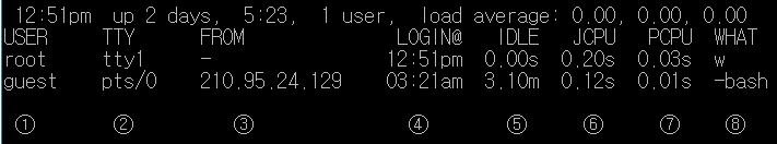 ② tty: 콘솔로 접속, pts: 터미널로 접속, 그 뒤의 숫자는 몇번째 터미널로 접속했는지 보여준다.