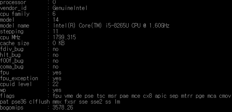 - 해당 서버의 cpu 정보를 보여주는 명령