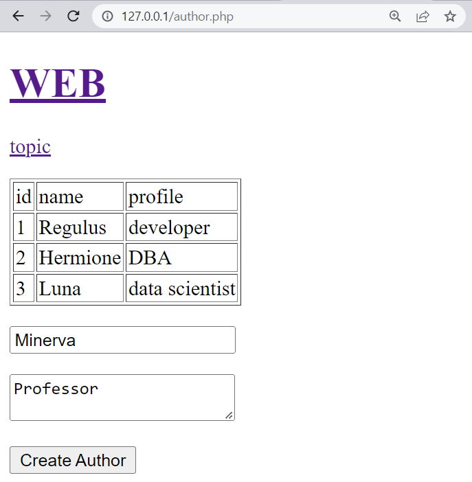 1. author.php에 <form>, <input>, <textarea> 태그로 Create Author 기능 만들기